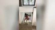 A hot woman has sex with a big dildo while taking a shower