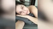 A naughty video of Marina Maya putting on stockings before going live yesterday.