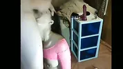 Fat slut plays with her pussy using a big dildo