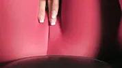 Babe in red velvet dress humping and grinding till legs shaking orgasm