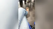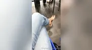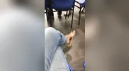My chubby GF came back from the gym and gave me a foot job