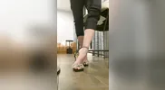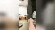 Footjob and cum shot after giving the guy a blowjob in the salon