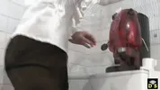 Cuckold Lucy Skye pees on toilet, humiliated by Femdom alpha