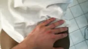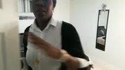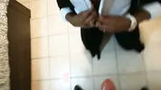 Female boss has a quickie with her employee in the bathroom before work.
