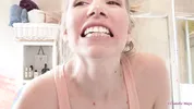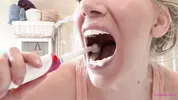 Danielle Maye uses her pink electric toothbrush for some intense mouth fetish action