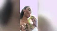 CaityFoxx shows her bikini in a daring outdoor strip show