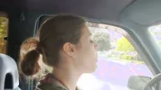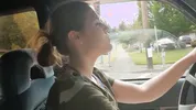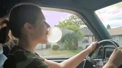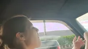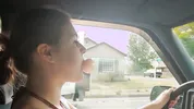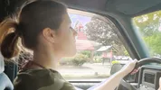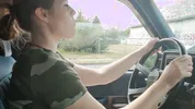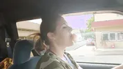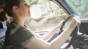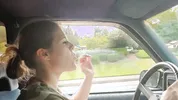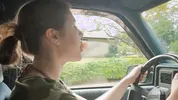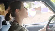 Barefoot slut Harleyheartstop blowing bubbles while driving a truck