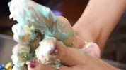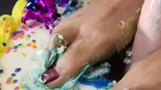 Footjob birthday treat for Aspen Snow by her loved one