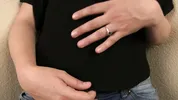 A pregnant woman has an intense experience with a strong release.