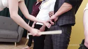 Syren De Mer pisses on her students in a wet 8on1 scene