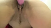 A pregnant woman with a hairy pussy squirts and wiggles her toes