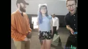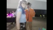 Busty stripper Emma Lovett gets banged on a public pole