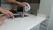 A brunette woman gets her mouth filled with cum by a guy