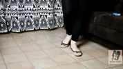 Dame Olga in red ballet flats, delivering a signature shoejob.
