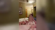 Behind the scenes footage of a sexy webcam girl preparing for a solo video shoot.