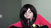 Little cuckold chick gets her mouth full of cum by kissing her wife's