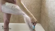 Pregnant babe Auroraxoxo showers and shaves her pussy