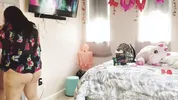 The sexy woman Yusimee stripping alone at home in her room