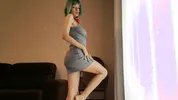 Lexi Grey is throat baby in a grey dress striptease