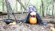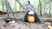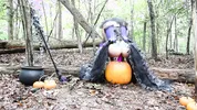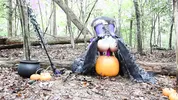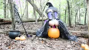 Aspen Snow rides the pumpkin head of a stir stick passionately