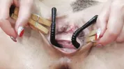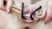 Busty black-haired beauty Blackangel gets her pussy gapped and prolapsed