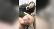 Ivyhelix wanking her pussy in airplane bathroom, justice served with cumshot
