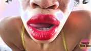Goddess Rosie Reed lipsticks mouth fetish worship with ebony lips