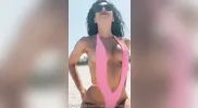 Melody Radford - Progress baby, showcasing her signature cheeky micro bikinis.