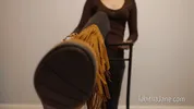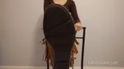 Shiny ass worship with Lucy Skye in leather and tights, a fetish tease.