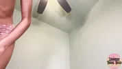 Hot yoga instructor stuffing Jean Shorts with cum through JOI