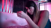 Bellatrixsweets licks the squirt from my feet, a kinky foot fetish act