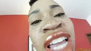 Goddess Rosie Reed lipsticks mouth fetish worship with ebony lips