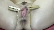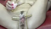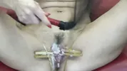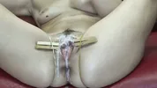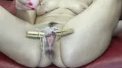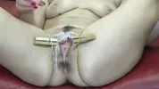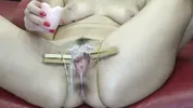 Busty black-haired beauty Blackangel gets her pussy gapped and prolapsed