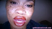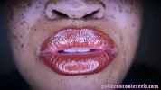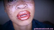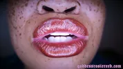 Goddess Rosie Reed lipsticks mouth fetish worship with ebony lips