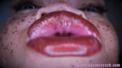 Goddess Rosie Reed gets her big lips covered with sperm for lube