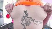 Katie Kinz getting tattooed and receiving a cock sucking lesson