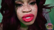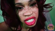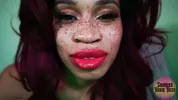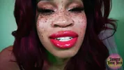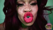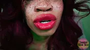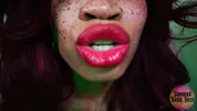 Goddess Rosie Reed lipsticks mouth fetish worship with ebony lips