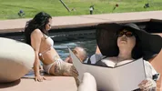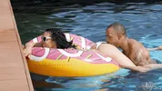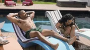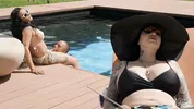 Hot shemale sex with gorgeous Eva Maxim by the pool, ending with a creamy finish.