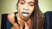 Goddess Rosie Reed lipsticks mouth fetish worship with ebony lips