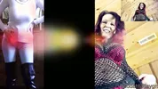 A pregnant woman shows off her belly while doing a sensual dance and foot play