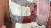 Jane gets her face covered with cum by a hard dick