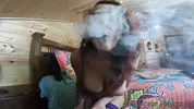 Hippiebees gets handcuffed and gives a blowjob, challenging herself.