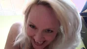 Rosie Reed got cum on her face after giving a blowjob. Now she's sticky and wet!