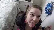 Kristy gets a cum shot facial after giving a BJ ????????