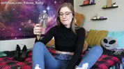 Nerdy girl Emma Ruby masturbates solo with her toy in POV style