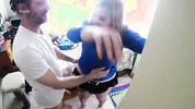 A guy checked the strength of ass while fucking a young girl in a new pose
