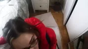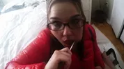 Wearing glasses slut Kristy is good at deepthroat blowjob, you know!