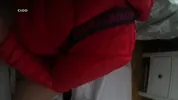 A man's spirit is fucked out by dirty blondie in a down jacket