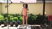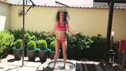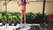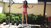 A sexy girl in a deviousbrunette is jumping on a trampoline in slow motion