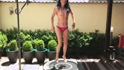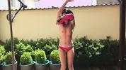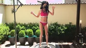 Bendy babe Lexi in shiny silver bikini porn
